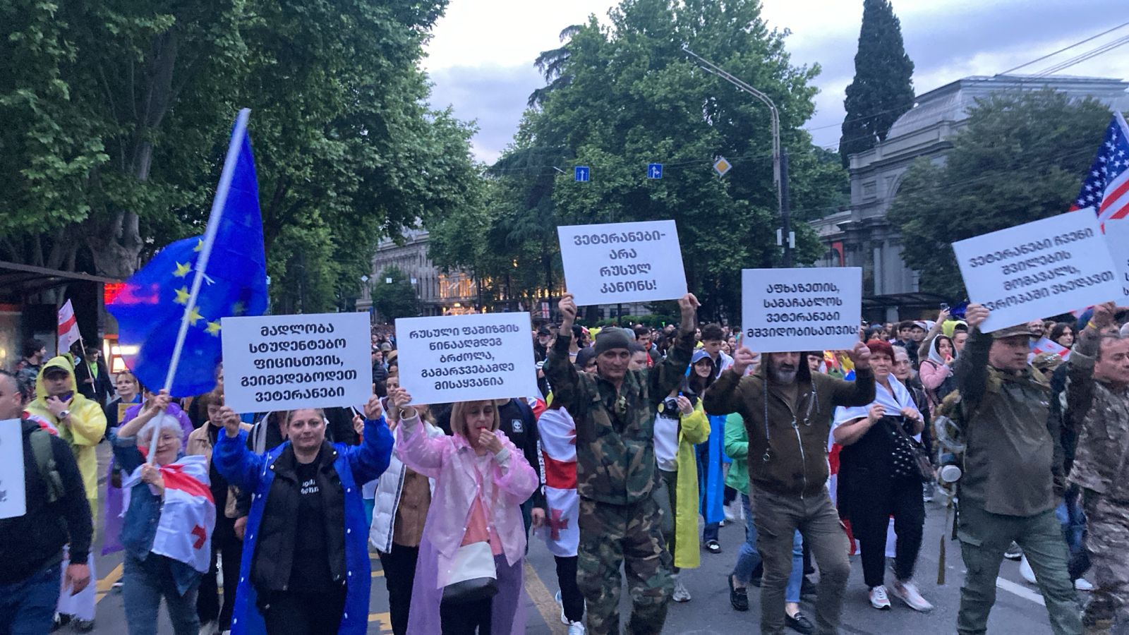 “Xarici təsirin şəffaflığı haqqında” qanuna etiraz etmək üçün toplaşan vətəndaşlar Birinci Respublika Meydanından Avropa Meydanına doğru yürüş ediblər.