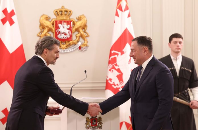 Regionpress.ge 24News-ə istinadən xəbər verir ki, Prezident sarayında baş tutan tədbirdə baş nazir İrakli Kobaxidze və parlamentin sədri Şalva Papuaşvili də iştirak ediblər.