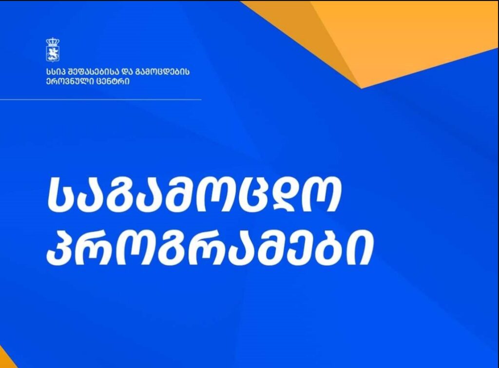 Regionpress.ge xəbər verir ki, imtahan proqramı 12 fənn üzrə təsdiq edilib: gürcü dili və ədəbiyyatı; riyaziyyat; xarici dillər; tarix; biologiya; coğrafiya; fizika; kimya; ümumi qabiliyyət; ədəbiyyat; vətəndaş təhsili; təsviri və tətbiqi sənət.